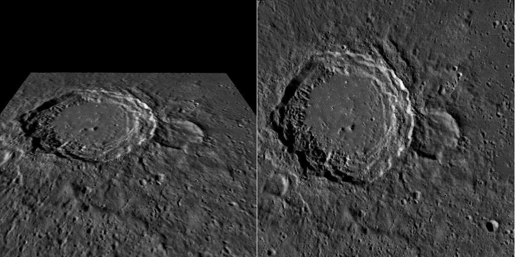 Composição: As crateras ARISTOTELES (diâmetro: 87 Km) e MITCHELL (diâmetro: 30 Km) fotografadas em voo orbital pela sonda lunar robótica LRO da NASA.