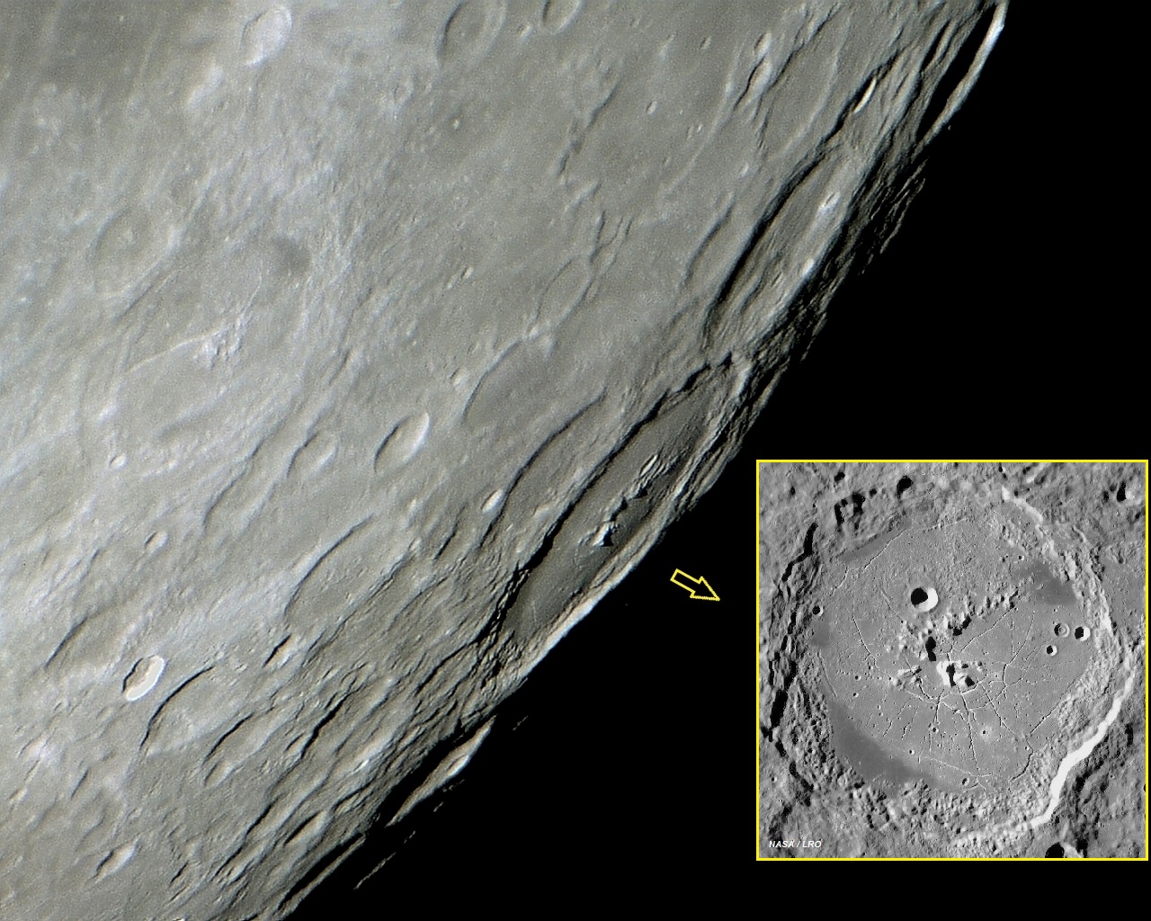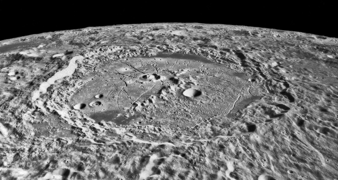 Imagem: A grande cratera de morfologia complexa HUMBOLDT fotografada em voo orbital pela tripulação da missão APOLLO 15 - NASA.