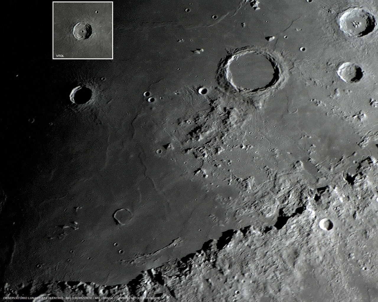 A interessante cratera TIMOCHARIS e seu impacto central.