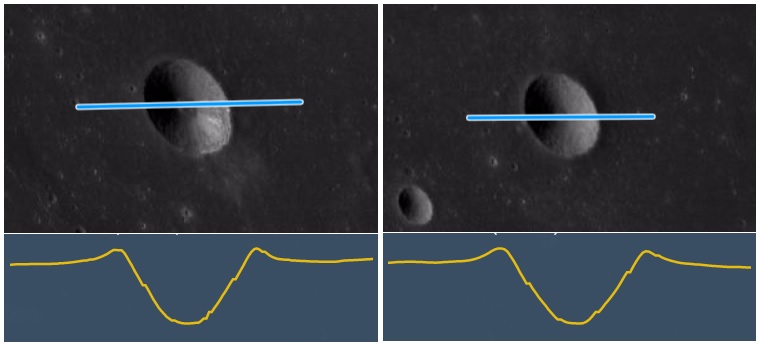 Composição: Os Perfis Altimétricos das crateras Gassendi J e Gassendi O - NASA / LRO QuickMap.