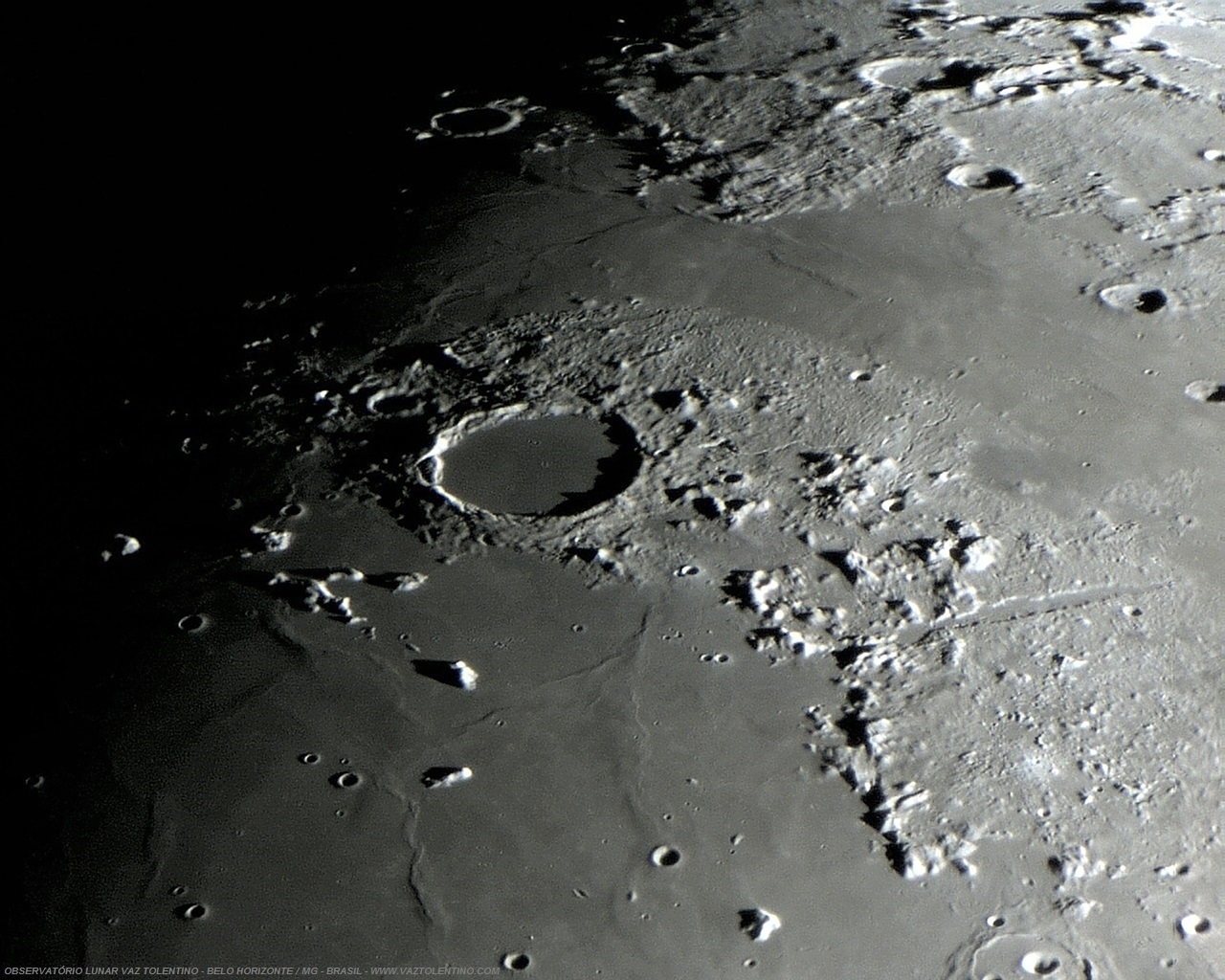 PLATO é uma das mais famosas, proeminentes e observadas crateras de impacto da Lua. Esta bela formação está localizada na margem norte do Mare IMBRIUM e sua região é considerada uma das mais lindas e fotografadas da superfície lunar.