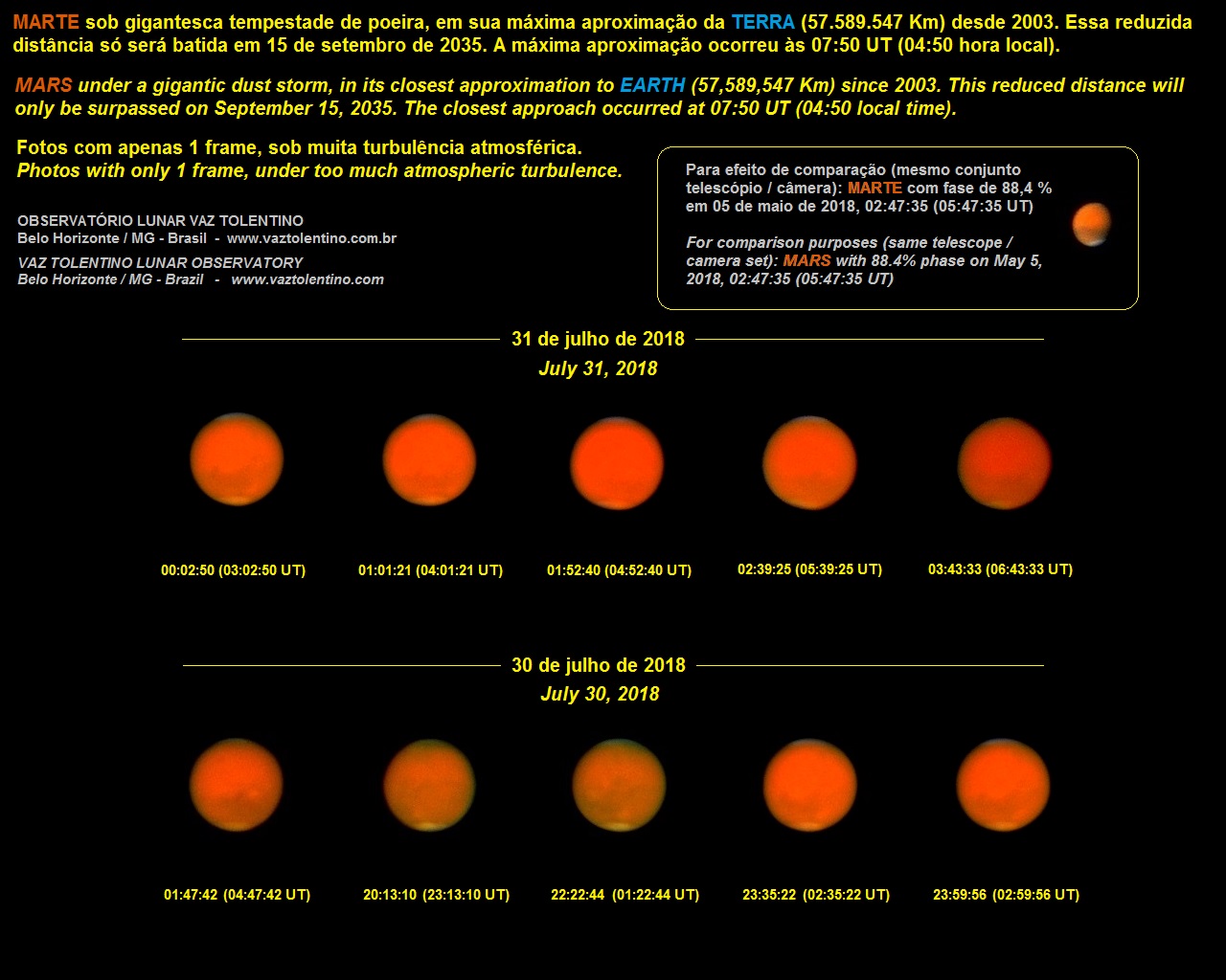 31 de julho de 2018 - A maior aproximação de MARTE até 2035 !