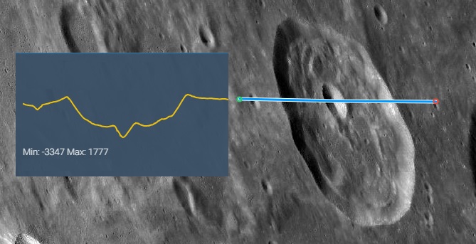 Ilustração: O perfil altimétrico (NASA / LRO QuickMap) W - E da cratera HENRY FRÈRES.