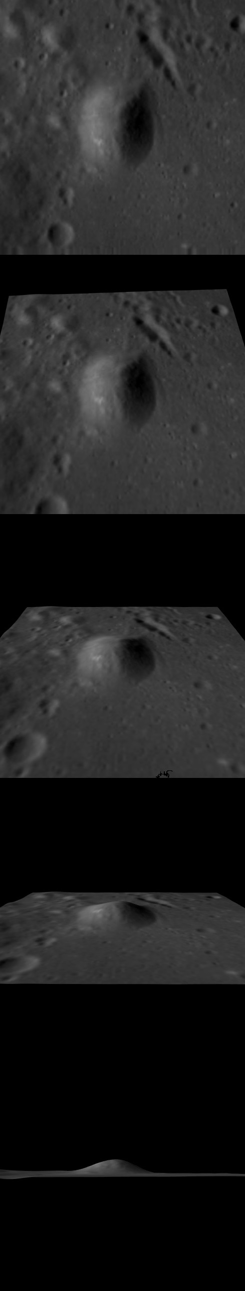 Composição: Imagens do pequeno e destacado monte hemisférico - NASA / LRO.
