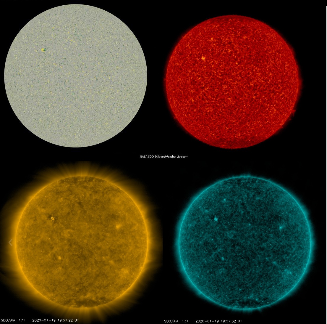 Imagens mostrando o flare em 19 de janeiro de 2020 - NASA e Space Weather Live.