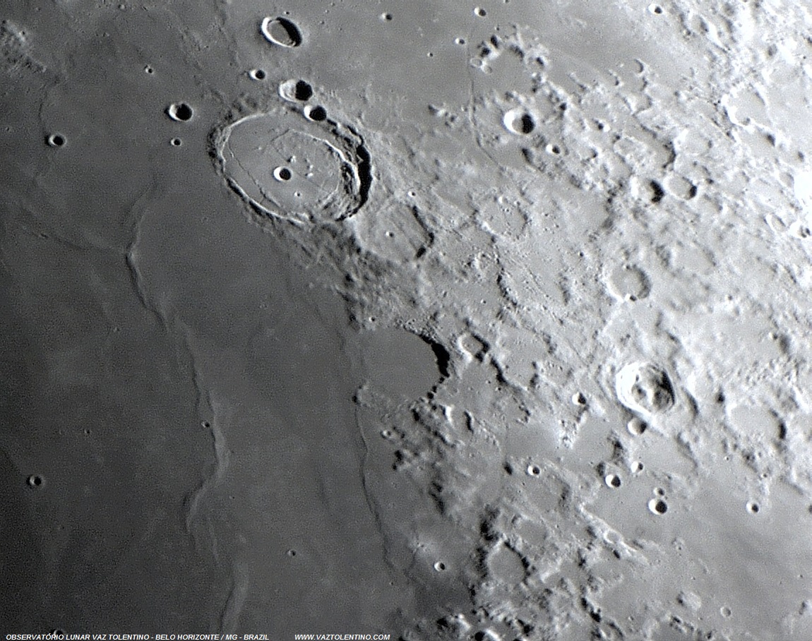 Foto: Lua cheia mostrando a abrangência da foto enfocando o local de desembarque do veículo explorador soviético Lunokhod 2 - VTOL.
