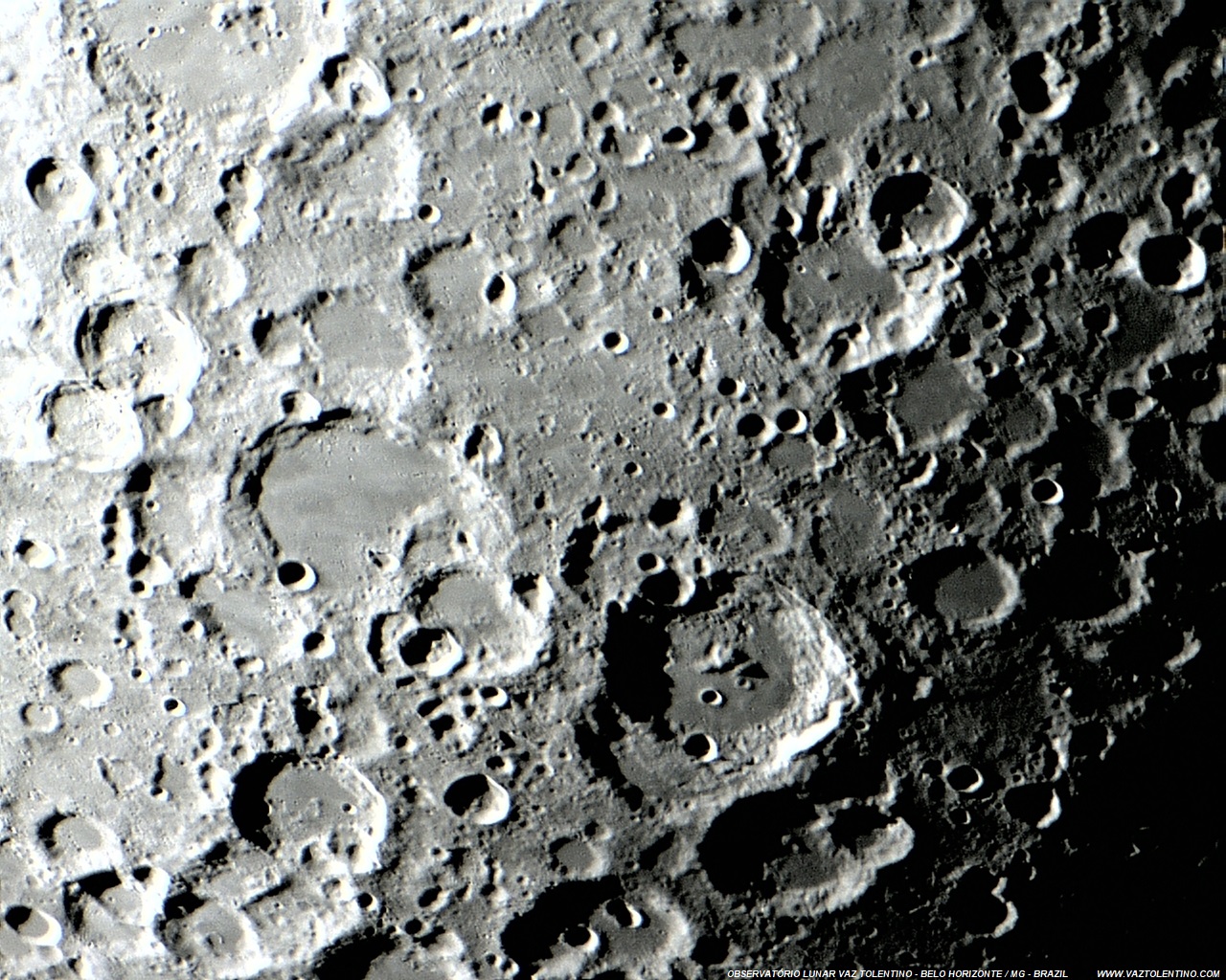 Imagem: As crateras STOFLER e FARADAY fotografadas pela sonda lunar robótica LRO da NASA.