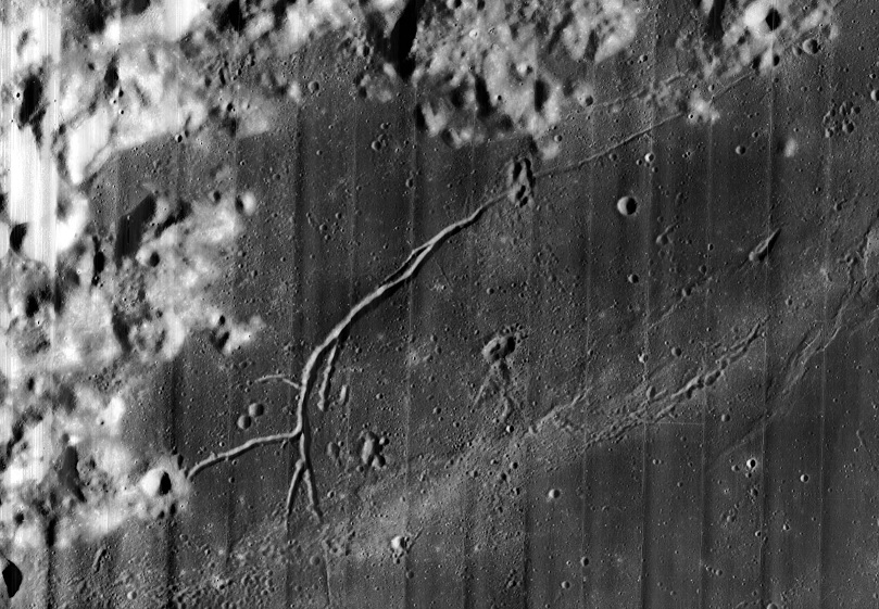 Imagem: Rima Calippus fotografada em voo orbital pela sonda lunar robótica americana Lunar Orbiter IV da NASA.