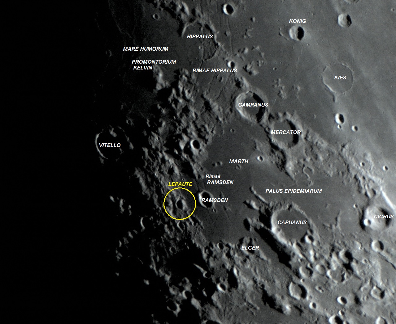 FotoOutra imagem da região onde está localizada a cratera LEPAUTE. Foto executada por VTOL com apenas 1 frame em 09‎ de ‎junho‎ de ‎2014, ‏‎21:18:34 (00:18:34 UT).