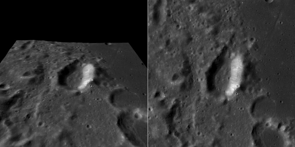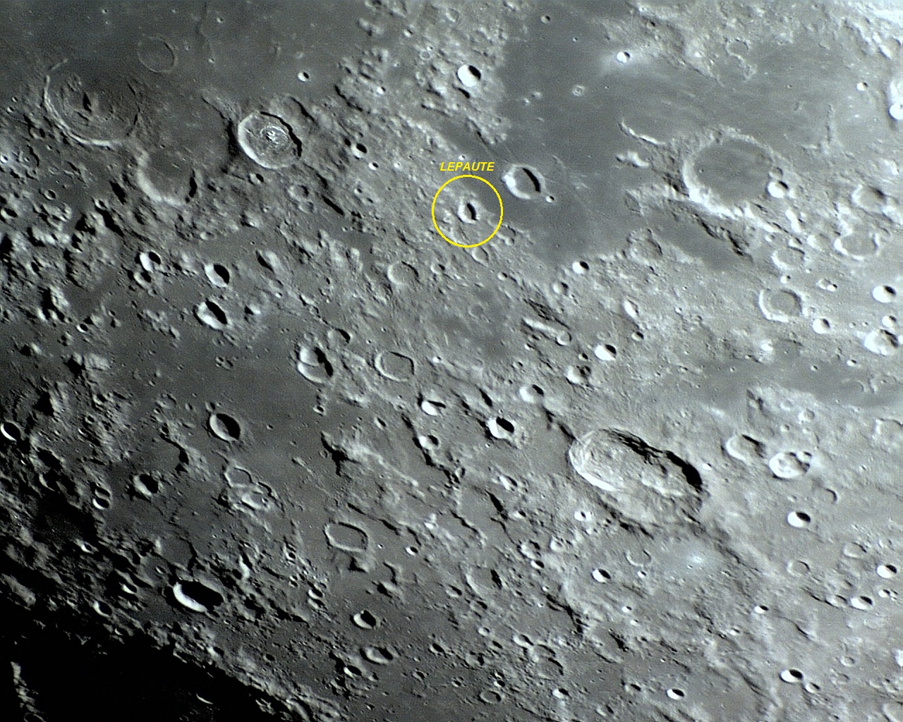 ComposiçãoA cratera LEPAUTE fotografada em voo orbital pela sonda lunarrobótica LRO da NASA.