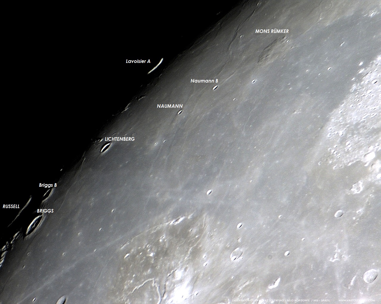 Por estar posicionada bem próxima do limbo lunar Noroeste, a cratera de encostas altas "Lavoisier A" torna-se difícil de observar através de telescópios baseados na Terra.