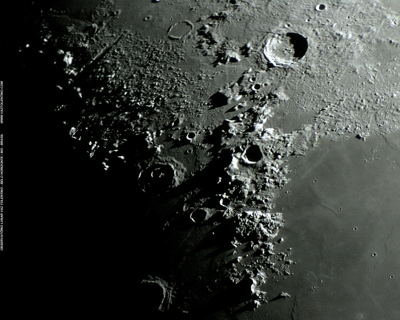 Essa bela e interessante cordilheira lunar está localizada nas coordenadas selenográficas LAT: 38° 24′ 00″ N, LON: 10° 00′ 00″ E. O comprimento dessa proeminente cadeia de montanhas é de aproximadamente 500 Km, iniciando no “gap” mencionado anteriormente, na sua ponta sul, e finalizando na cratera EUDOXUS (diâmetro= 67 Km, profundidade= 4,35 Km), ao norte.