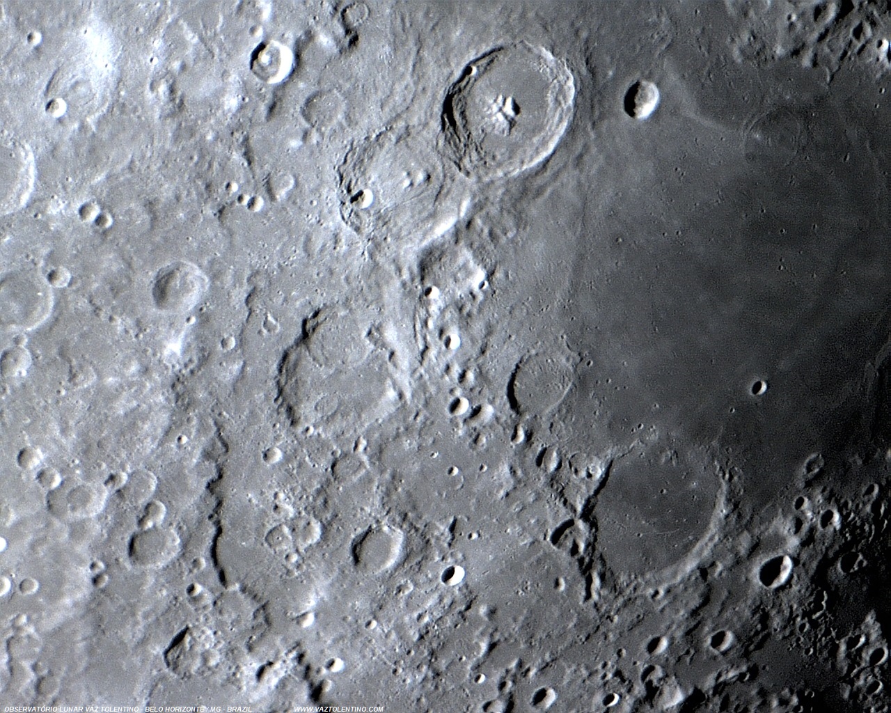 Um longuíssimo tentáculo (com cerca de 1.350 Km de comprimento) do sistema de raios brilhante da proeminente cratera TYCHO (diâmetro: 86 Km, profundidade: 4,8 Km), parte desta e atravessa diagonalmente a pequena cratera ROSSE, de sudoeste para nordeste.