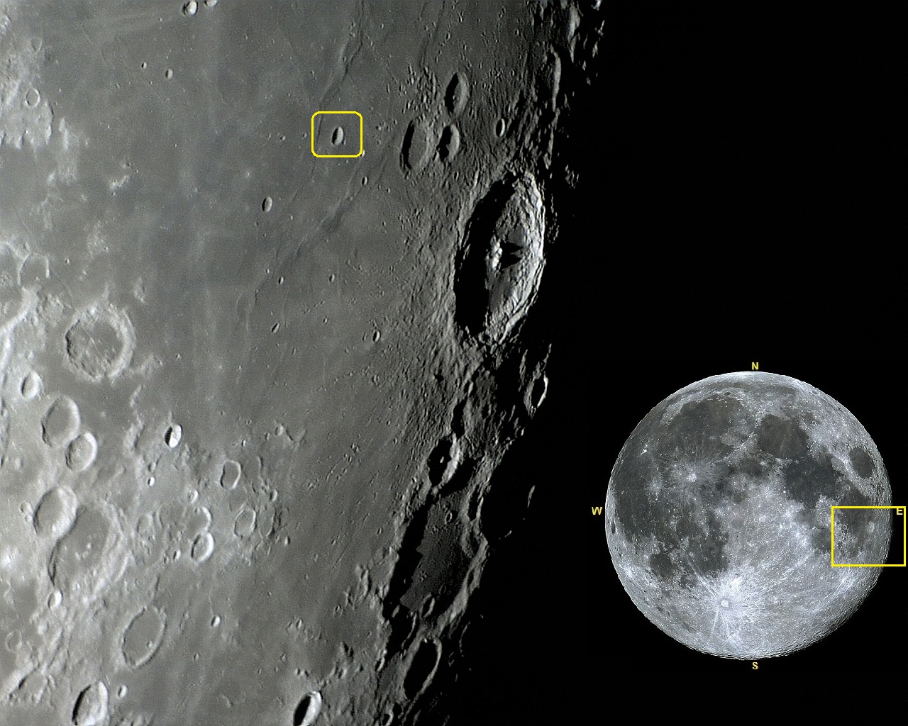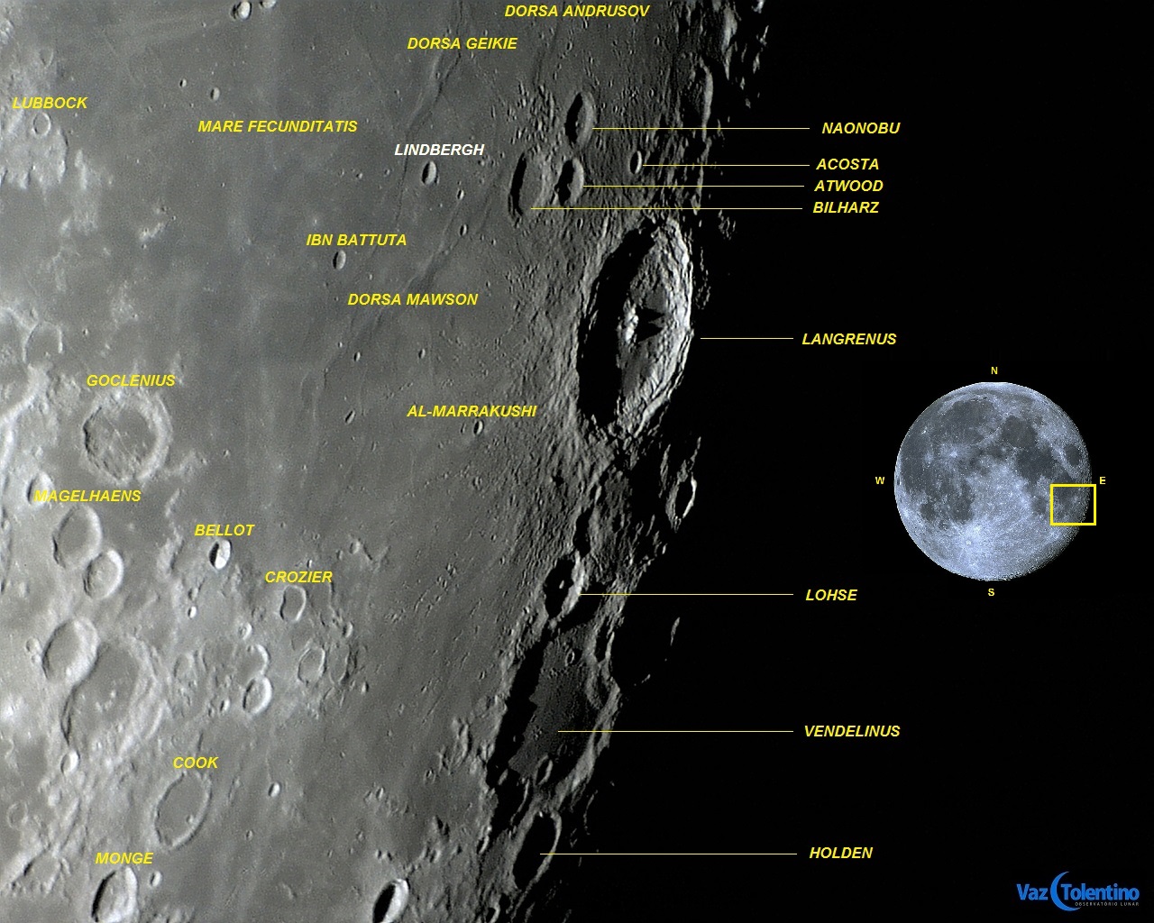 Coordenadas selenográficas: LAT: 5.4° S, LON: 52.9° E;