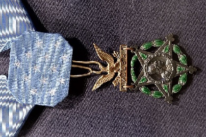 Imagem: a medalha de honra recebida pelo piloto Lindbergh.