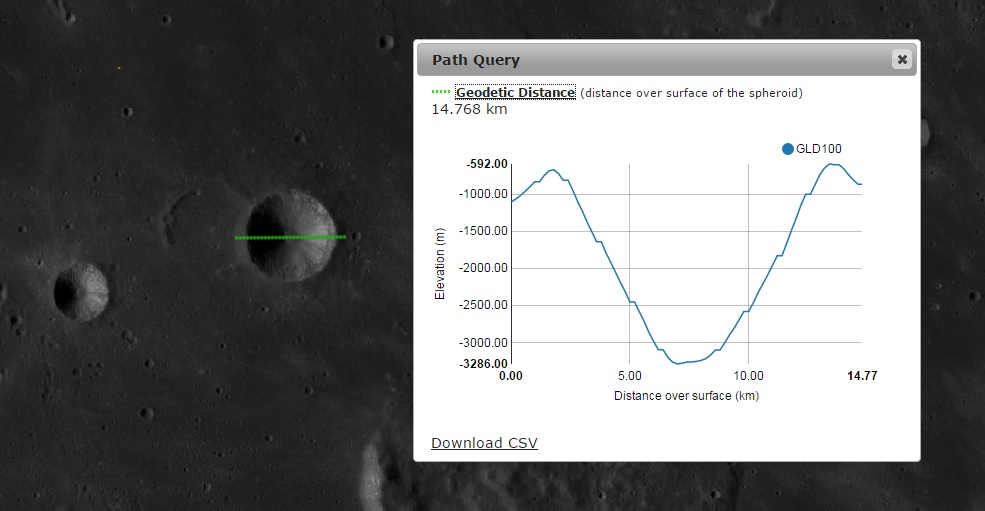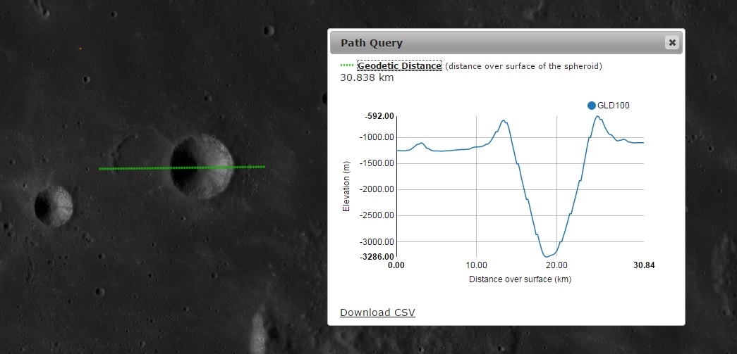 Imagem: O perfil altimétrico de TURNER e sua companheira fantasma – LRO QuickMap / NASA.