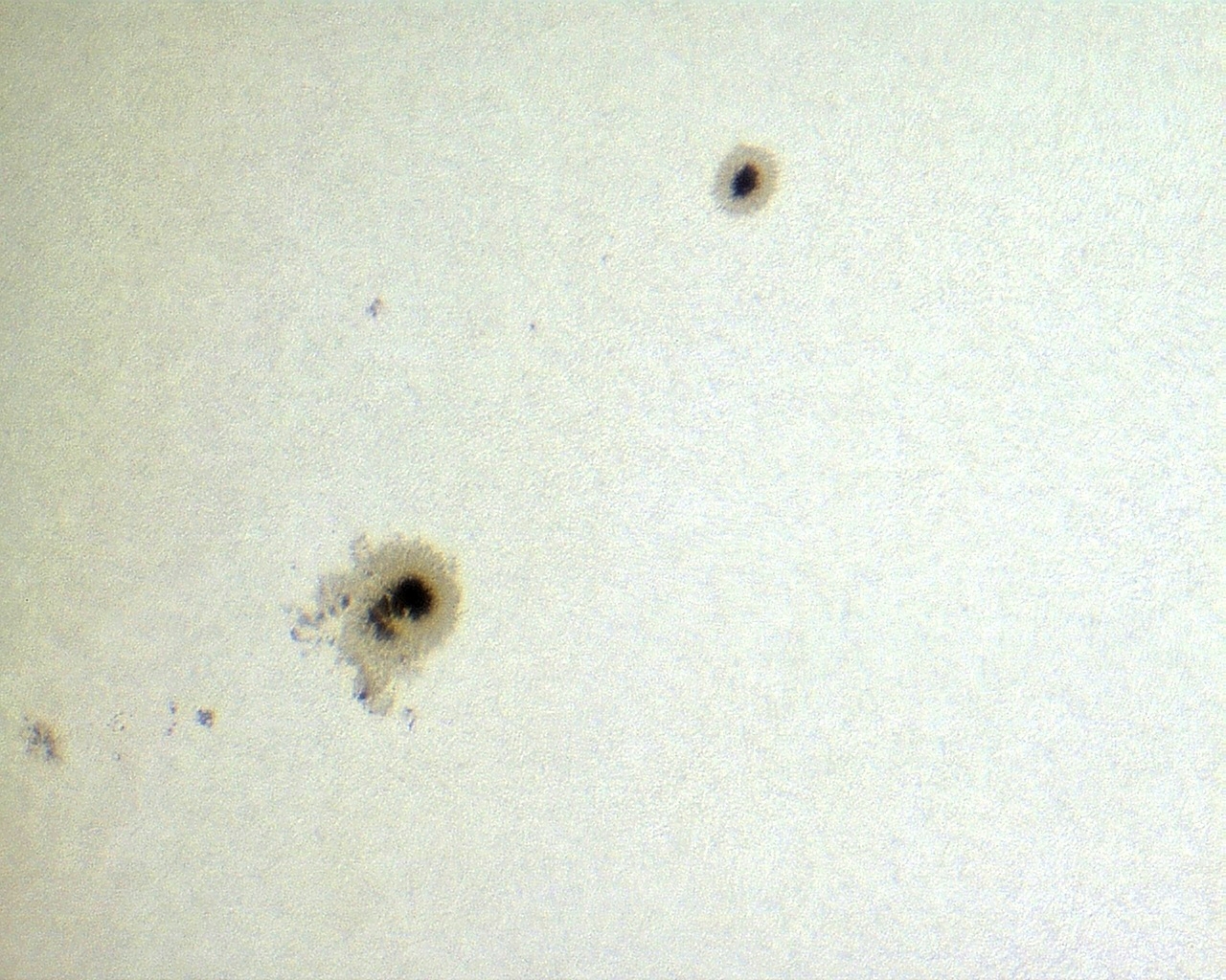 Imagem: A grande região ativa AR2786 e sua companheira, a AR 2785. Foto utilizando o filtro Cak por Guilherme Grassmann.