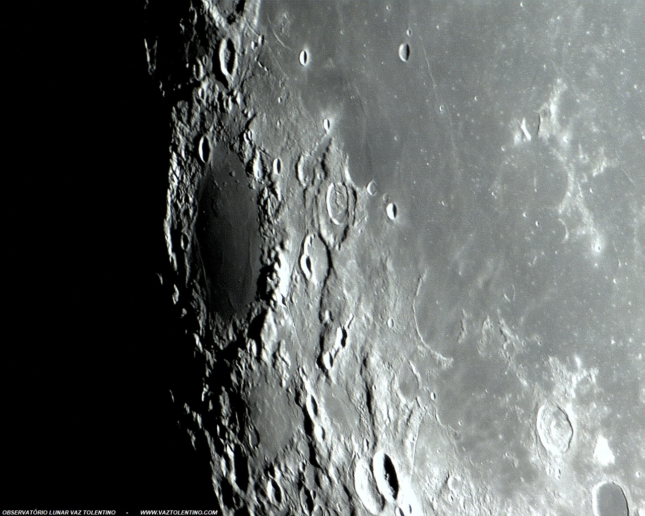 As regiões dos limbos da Lua oferecem um desafio para o observador, porque todos os detalhes são distorcidos por encurtamento. A grande, escura e destacada cratera GRIMALDI localiza-se próxima do limbo lunar oeste. Por causa disso, sua forma real que é circular, apresenta-se como elíptica a partir do nosso ponto de vista da Terra.