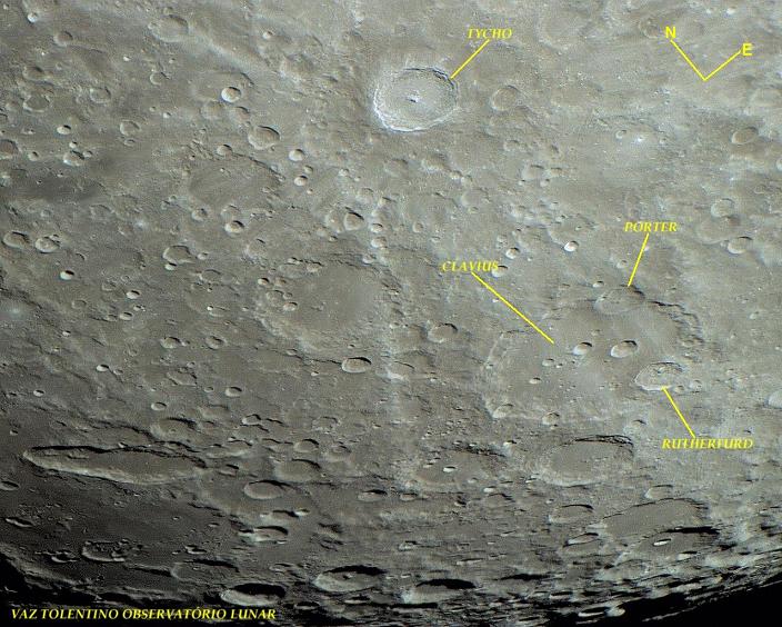 TYCHO– (diâmetro: 85 Km (53 milhas), Lat: 43.3º S Long: 11.2º W).